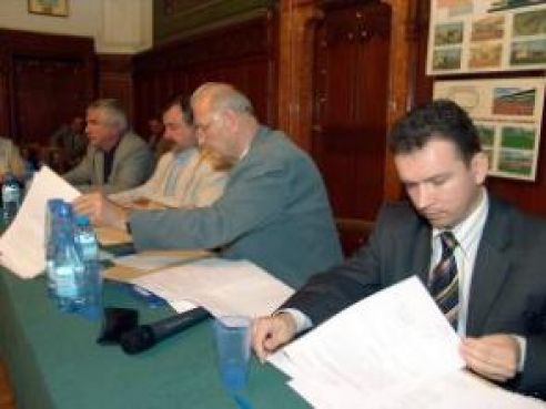 Na zdjęciu: Tylko ta czwórka radnych nie poparła uchwały dotyczącej stadionu – (od lewej) Z. Wiczkowski, T. Rosiński (w ogóle nie głosował), Edward Jankowski (LPR) i Igor Strąk (LPR)
