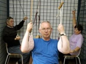 Na zdjęciu: Ks. Marian Subocz złamał obojczyk gdy sięgał z drabinki na półkę z książkami. Żeby odzyskać sprawność musiał szybko zacząć ćwiczyć. Pacjenci z mniej poważnymi urazami czekają w kolejce nawet sześć tygodni.