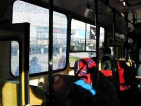 Na zdjęciu: "Dwójka" z roztrzaskaną szybą dowiozła pasażerów do pętli przy ul. Dmowskiego.