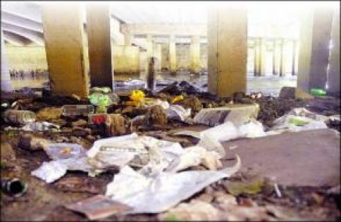 Na zdjęciu: Koryto Słupi pod mostem przy ul. Garncarskiej w Słupsku. Gdy woda opadnie wyraźnie widać, że rzeka zamienia się w wysypisko śmieci.
