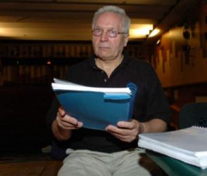 | Stanisław Miedziewski podczas pierwszej próby z aktorami Nowego Teatru. |
