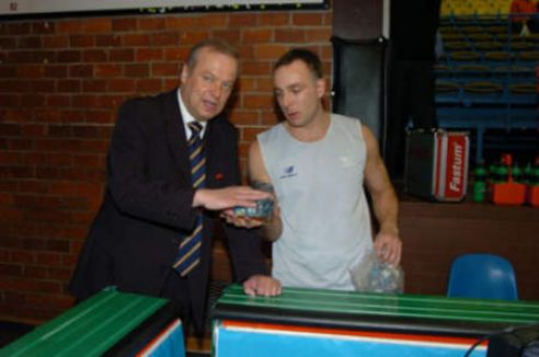 | Prezes "Czarnych", Andrzej Twardowski (z lewej) zapewnia, że zmiana nazwy spółki sponsorującej drużynę, nie ograniczy środków jakie drużyna otrzymuje na swoją działalność. |