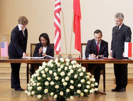 Warto dodać, że w środę o godzinie 11:30 Radosław Sikorski, minister spraw zagranicznych i Condoleezza Rice, sekretarz stanu USA podpisali umowę o instalacji na terenie Polski amerykańskiej tarczy antyrakietowej. Według niepotwierdzonych jeszcze oficjalnie informacji tarcza ma stanąć na terenie byłego lotniska wojskowego w podsłupskim Redzikowie.