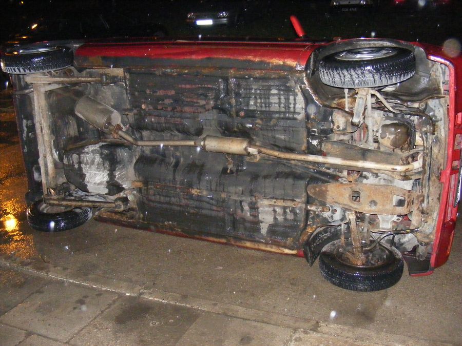 Dyżurny policji w Słupsku otrzymał zgłoszenie o kilku osobach dewastujących samochód znajdujący się na osiedlowym parkingu. Zgłaszająca informowała, że widzi z okna trzech mężczyzn ubranych na sportowo, którzy siłują się z jej samochodem daewoo tico. Kołysząc autem na boki sprawcy przewrócili je na lewą stronę, a następnie uciekli. Natychmiast we wskazane miejsce skierowano patrole policji.