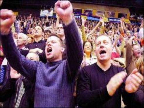Na zdjęciu: W hali "Gryfii" w Słupsku kibice szaleli ze szczęścia.