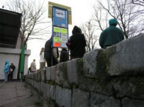 | Dzisiaj pasażerowie czekający na autobus muszą stać, bo nie ma ławki. Zaproponowaliśmy, by miejsce do siedzenia zrobić na murku. wystarczy tylko przymocować tam deski. |