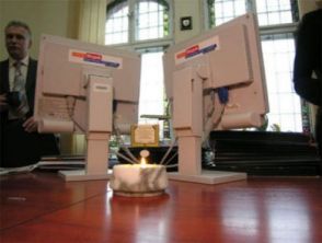 | Gdy wczoraj zgasły światła w ratuszu, w niektórych wydziałach - tak jak w sekretariacie prezydenta - pojawiły się na biurkach świeczki. |