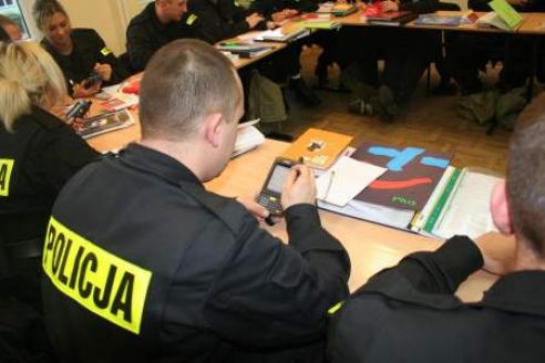 | Słuchacze ze Szkoły Policji w Słupsku podczas nauki obsługi terminali. Fot. APR-SAS |