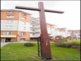 Na trawniku - obok domów przy ul. Słowackiego - stanął krzyż. Ani architekt miejski, ani plastyk nic o tym nie...